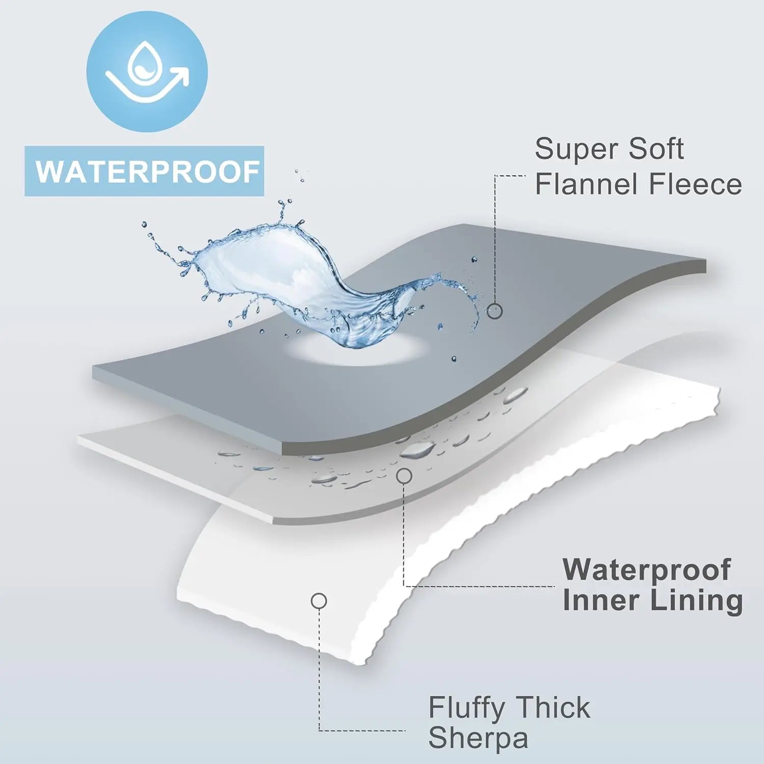 Waterproof Bed Blanket, Reversible Sherpa Fleece Throw Blanket For Dog Puppy Cat, Furniture Cover Protects Bed Couch Sofa From