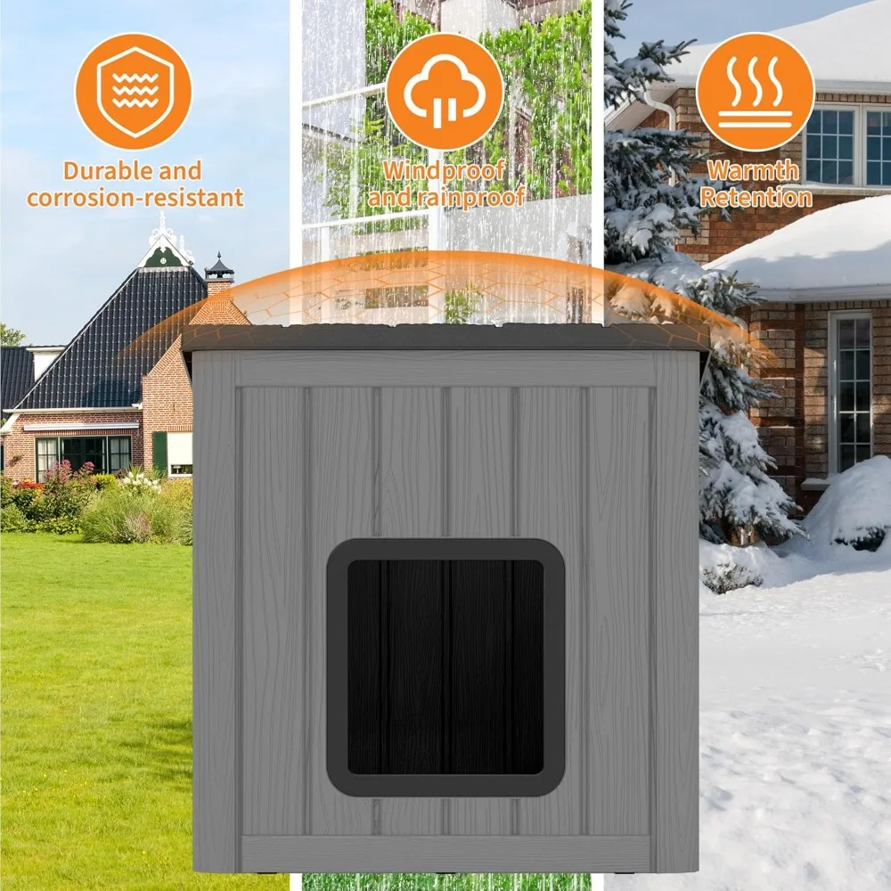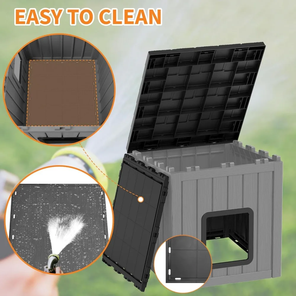 This cat house is made from high-quality, UV-resistant polypropylene plastic, ensuring it can withstand all weather conditions without damage. The design includes an insulated, waterproof, and windproof structure that keeps your cat dry and protected from the elements. The spacious interior is safe and comfortable for adult cats, with rounded corners and smooth edges to minimize the risk of injury. The surface is easy to clean, resisting dirt and odors, requiring only a damp cloth for maintenance. The cat house's neutral colors and sleek design blend well with outdoor settings, providing a natural and stylish shelter for your feline friends.
