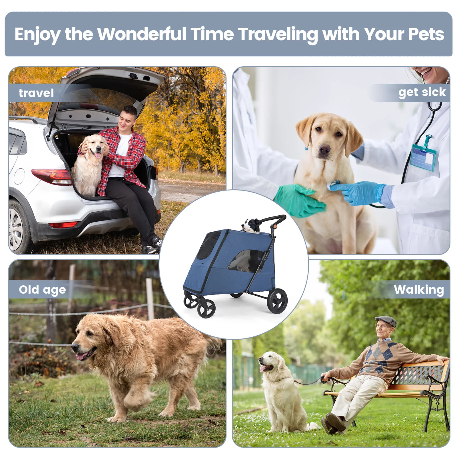 Wedyvko Medium or larger Pet Stroller 4-Wheel Dog Travel Stroller Jogger for Cat Pet Suplies Outdoor carrinho de bebe